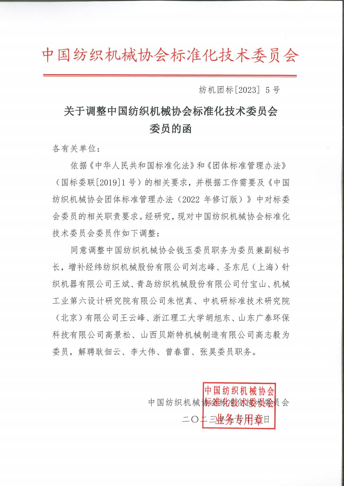 关于调整中国纺织机械协会标准化技术委员会委员的函