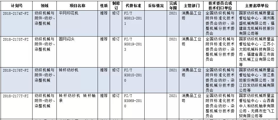 日国家工业和信息化部办公厅印发2018年第四批行业标准制修订计划,批准4项纺织机械领域行业标准计划项目,完成年限为2021年(发布)。纺织机械领域行业标准项目见下表: