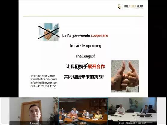 双方就全球主要纺织市场的发展现状和未来发展趋势进行了交流。我协会从宏观经济、纺织行业、纺织机械行业、针织机械行业、当前市场现状五个方面介绍了情况。安歌华先生、汤姆梅森先生从织造机械产量、2020年全球面料生产主要市场情况、中国纺织上游中游情况、前景展望四个方面分享了其研究结果。